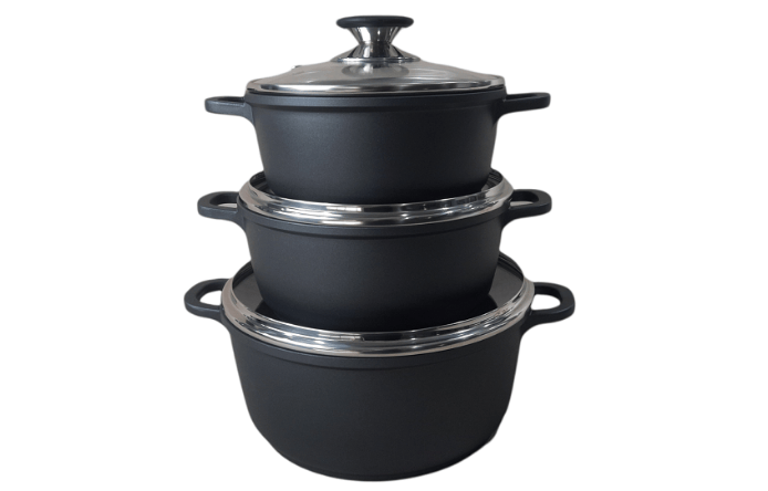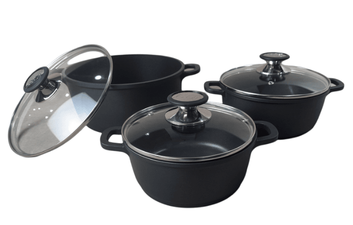 This 3-piece non-stick casserole set offers durable stone-effect construction for even heating and long-lasting performance. Each pot includes a heat-resistant handle and a glass lid, making everyday cooking easier and more efficient.