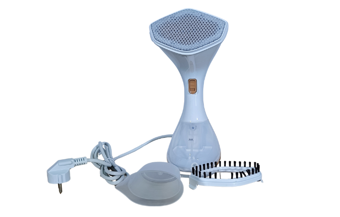 A compact garment steamer designed for quick wrinkle removal, delivering strong steam for fresh and smooth clothes.