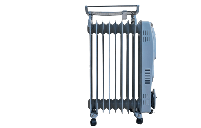 Compact oil-filled heater with adjustable heat and turbo fan for fast, efficient room warming.