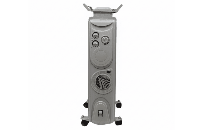 Compact oil-filled radiator heater with adjustable heat, turbo fan boost, and efficient all-room warming.