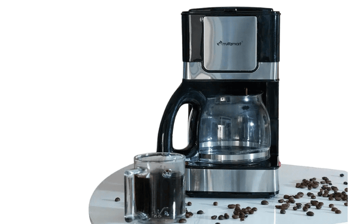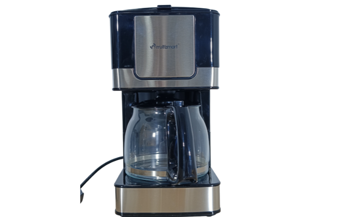 A compact and efficient Multismart coffee maker designed for brewing up to 12 cups with a 1200 ml glass jug and 800W heating power.