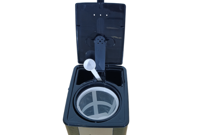 Its sleek black-and-silver design offers reliable daily performance for rich, aromatic coffee.