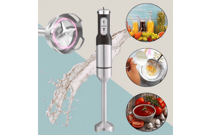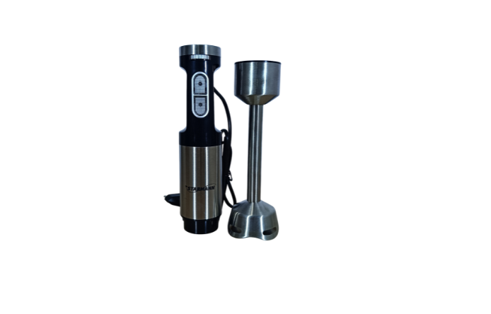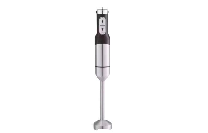 « A powerful hand blender designed for smooth mixing, blending, and pureeing, featuring a durable stainless-steel shaft and ergonomic control buttons. Ideal for soups, sauces, and daily kitchen tasks with reliable performance and easy handling. »