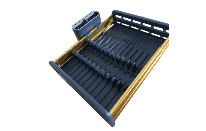 .Durable aluminium dish rack designed for efficient drying and stylish kitchen organization.