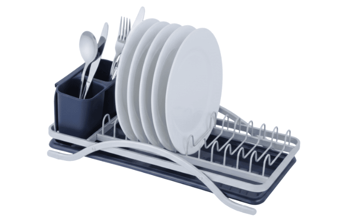 Compact aluminium dish rack designed for quick drying and organized everyday kitchen use.